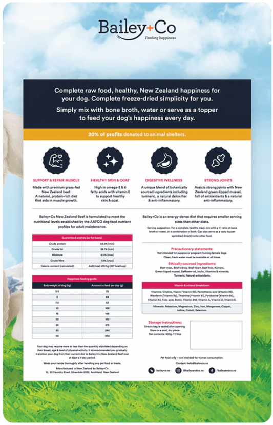 Bailey + Co New Zealand Freeze Dried Raw Dog Food (Beef)