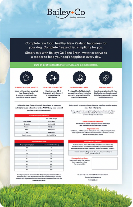 Bailey + Co New Zealand Freeze Dried Raw Dog Food (Lamb)