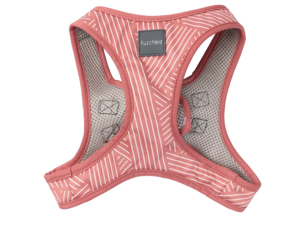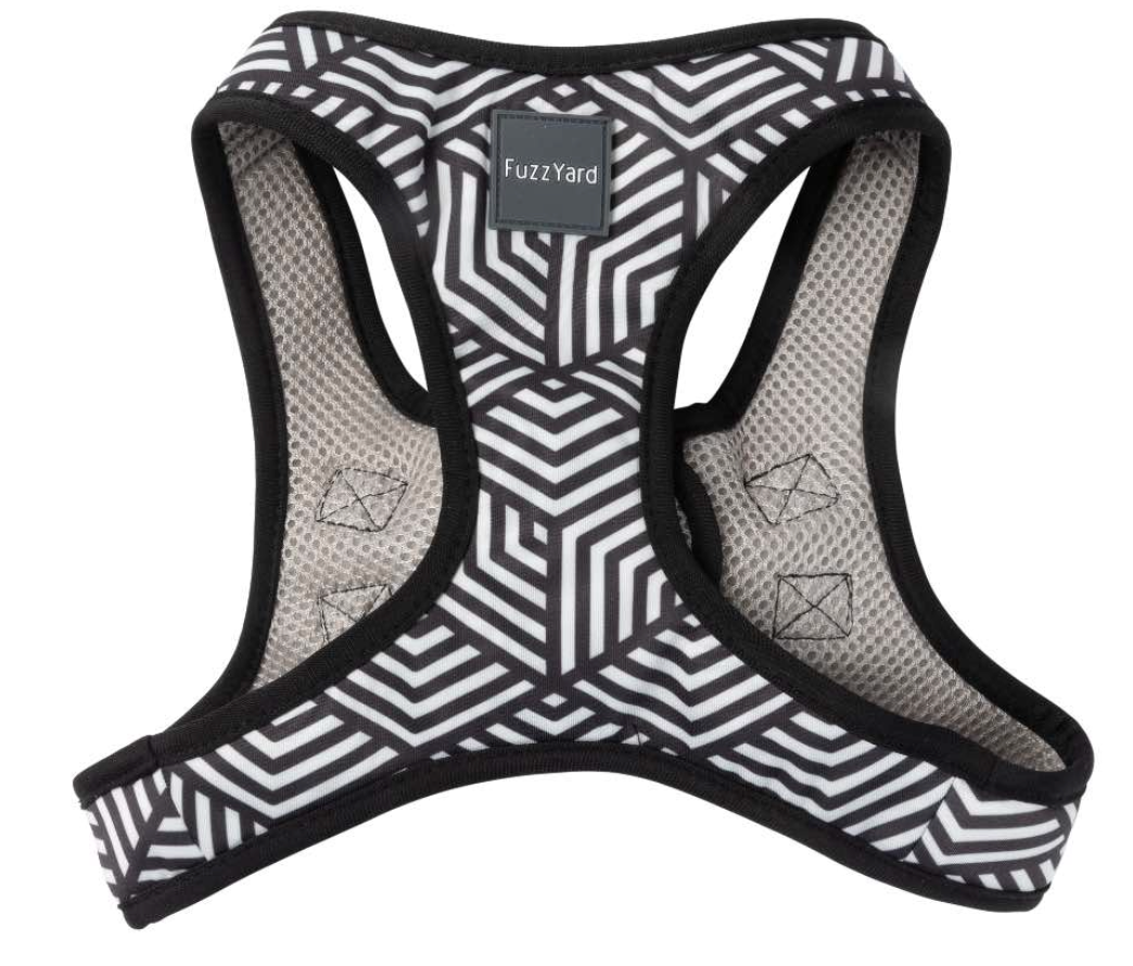 FuzzYard Step-In Dog Harness is also intricately fitted with a sturdy D-ring for you to clip on your matching FuzzYard Dog Leash to complete the look.