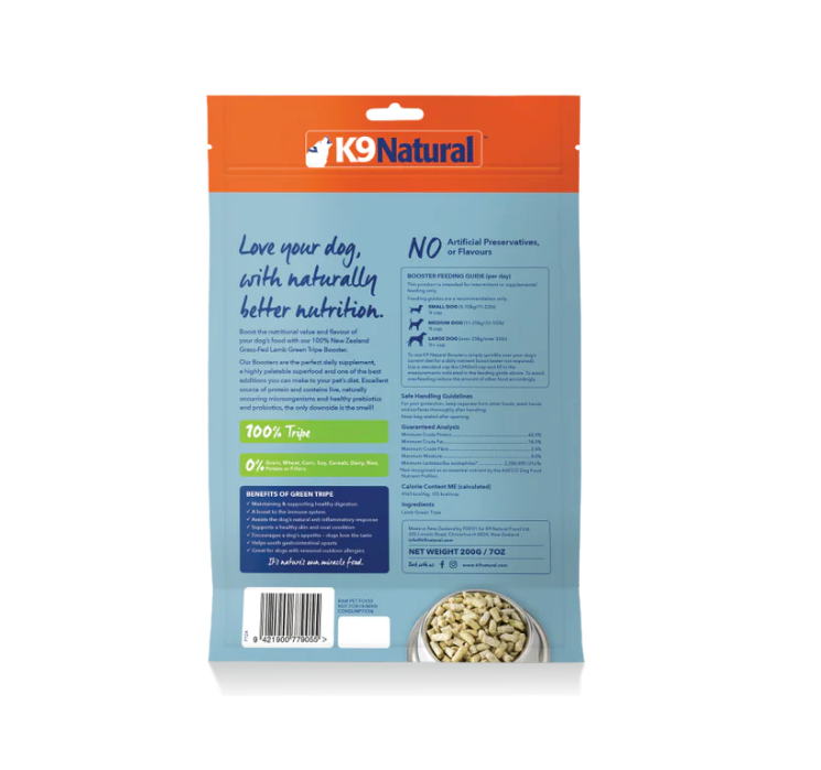 20% OFF - K9 Natural Freeze Dried Lamb Green Tripe Booster Dog Food (200G)