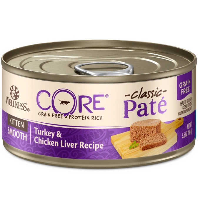 This high protein grain-free CORE Pate wet cat food contains wholesome ingredients that are free from carrageenan, artificial colors, flavors or preservatives. This protein focused diet gives your cat the energy it needs to thrive.